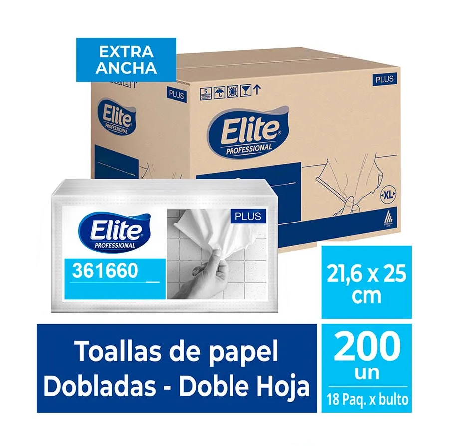 / Papel Toalla Interfoleado Elite XL Blanco 2h 200h x18pqt